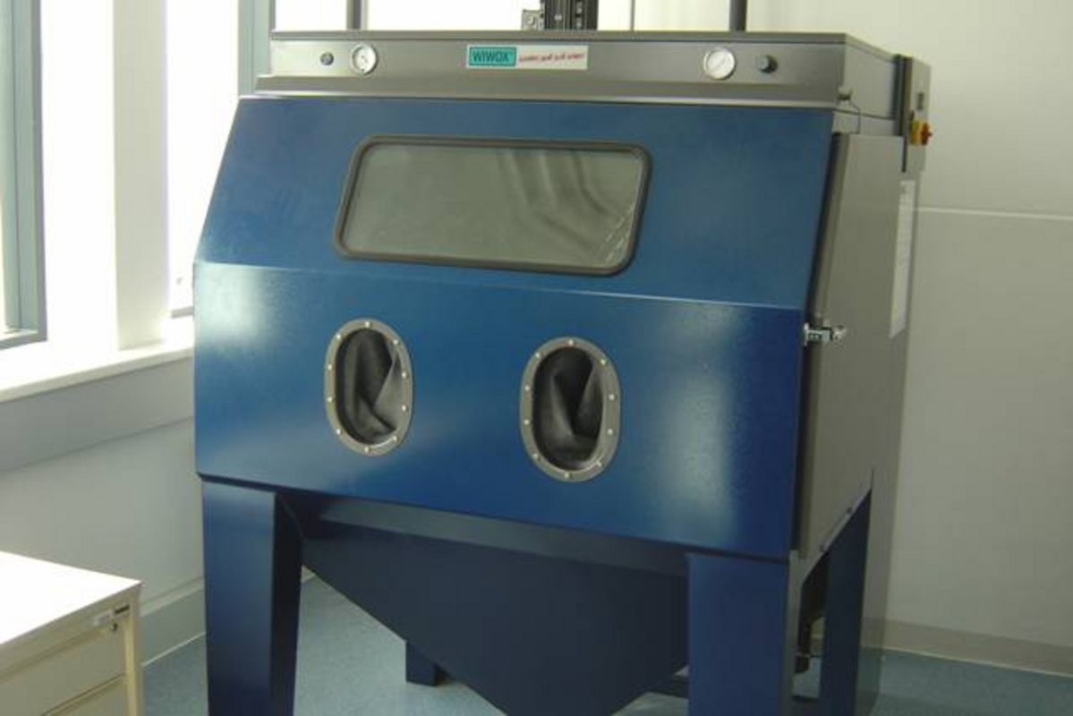 - Strahlkabine nach dem Trockenstrahlprinzip