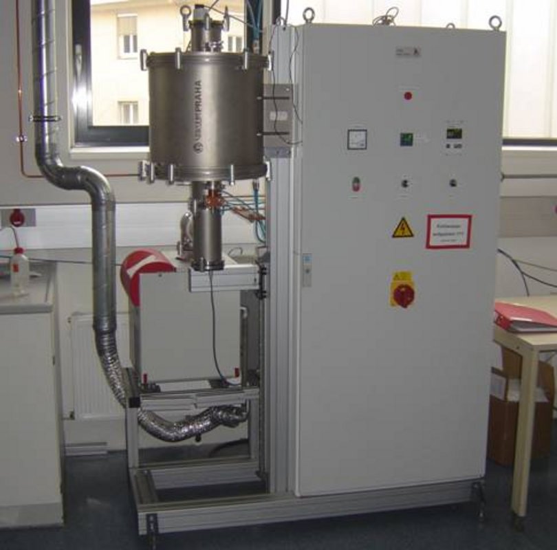 Der Vakuum-Kaltwandofen des Typs HTM-Reetz („Luzi”) dient der Durchführung von Glühungen im Vakuum bei Temperaturen von bis zu 1600°C. Der wassergekühlte Hochvakuumkessel mit einem Wolfram-Netzheizelement wird von unten beschickt und weist einen Nutzraum von 100 mm Durchmesser und 150 mm Höhe auf. Die Temperatur wird über Thermoelemente kontrolliert, und über einen Computer können Temperatur-Zeit-Programme vorgegeben werden.