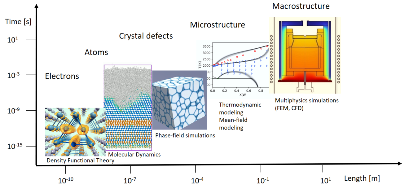 Die computergestützte Werkstoffmodellierung ist zu einem festen Bestandteil der Materialwissenschaft geworden. Die verwendeten Methoden reichen von der atomaren bis zur Kontinuumsebene und werden zur Unterstützung und Interpretation experimenteller Beobachtungen sowie zur Erforschung neuer Forschungsfragen eingesetzt. Unser Augenmerk liegt insbesondere auf der Modellierung kristallographischer Phasen von Metallen, intermetallischen Phasen oder Ausscheidungen, der Modellierung von Nanostrukturen, der Modellierung kristallographischer Defekte wie Versetzungen, Korngrenzen oder Grenzflächen und auch auf der thermodynamischen und kinetischen Simulation von Materialvorgängen auf der Mesoskala. Darüber hinaus werden Ansätze zur Kombination von physikalisch-basierten Simulationen mit datengetriebenen Modellierungsansätzen erforscht. Die Forschung wird in zwei Gruppen durchgeführt.