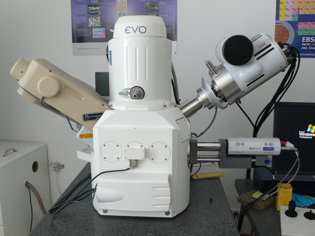 Ein Rasterelektronenmikroskop (REM) dient zur Untersuchung der Mikrostruktur und chemischen Zusammensetzung von Metallen und einer Reihe von organischen und anorganischen Materialien. Ein durch ein elektromagnetisches Linsensystem fein fokussierter Elektronenstrahl wird dabei über die zu untersuchende Probe gerastert, die sich in der Probenkammer im Hochvakuum befindet. Durch die Wechselwirkung des Elektronenstrahls mit der Probe werden verschiedene Signale erzeugt, welche mittels unterschiedlicher Detektoren erfasst werden können. Diese Signale liefern nicht nur Informationen über die Oberflächentopographie, sondern auch über die chemische Zusammensetzung und Mikrostruktur.