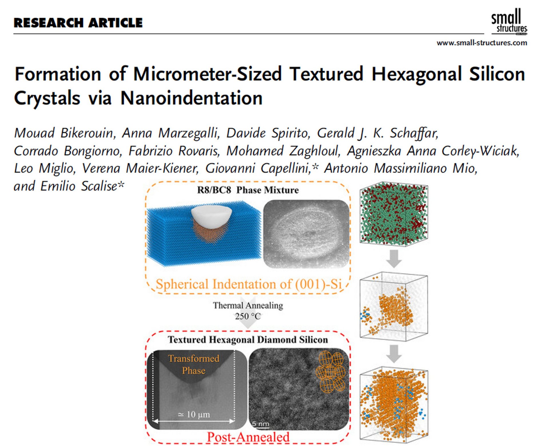 Die vorliegende Studie trägt den Titel "Formation of Micrometer Sized Textured Hexagonal Silicon Crystals via Nanoindentation and Annealing". In ihr wird ein neuartiges Verfahren beschrieben, bei dem Nanoindentation – präzise mechanische Eindrückung im Nanobereich – mit einer anschließenden Wärmebehandlung kombiniert wird. In der Folge können geordnete, mikrometergroße hexagonale Siliziumkristalle mit einer idealen Morphologie hergestellt werden.